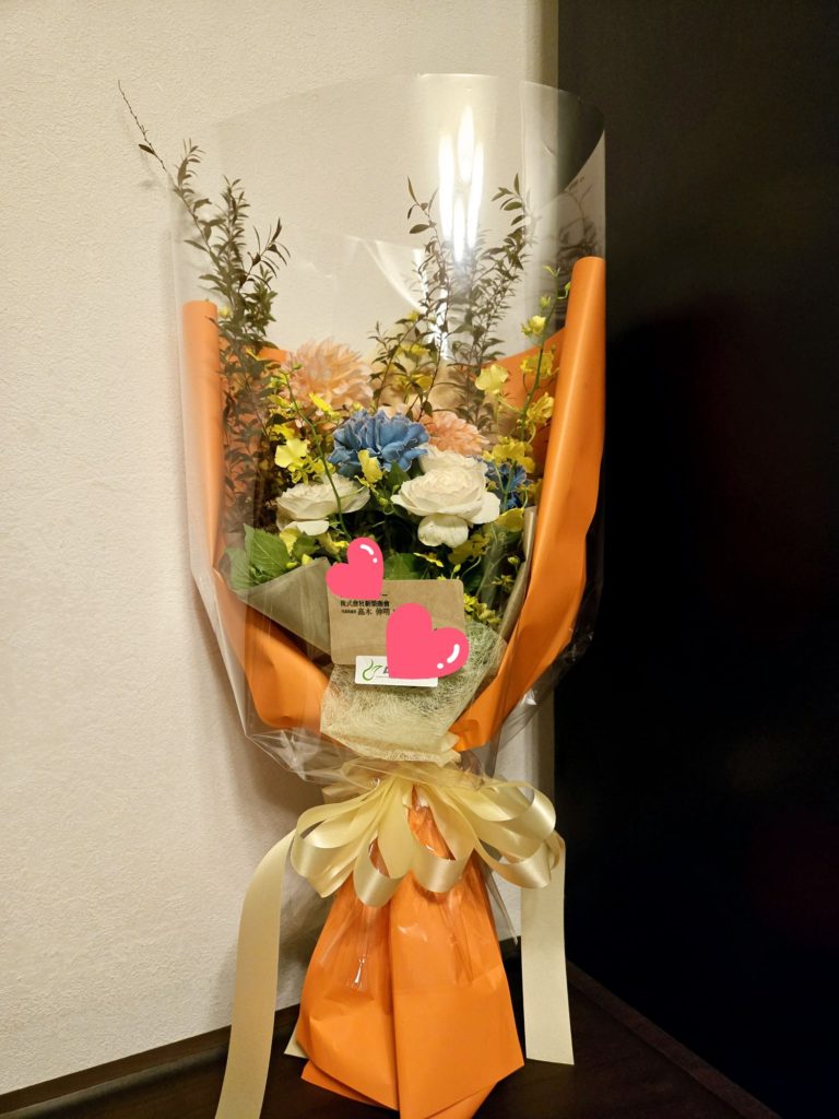 車屋さんで納車の手続きが済んで出発前にいただいた花束💐