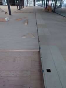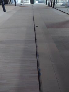 広島市内 某私立大学体育館 3階アリーナ 床見切り施工状況